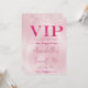 Denna glamourösa VIP all access-pass inbjudan till fest har en gnistrande, feminin design på en rosa bakgrund. VIP-titeln är tryckt högst upp, följt av evenemangets titel. Strängar av rosa diamanter skiljer texten åt. Glitterkonfetti accentuerar de övre och nedre kanterna. Platsen och tiden för festen eller evenemanget är tryckt på baksidan. Det är perfekt för en födelsedagsfest, sweet 16, bröllopsdusch eller annan elegant firande.