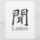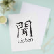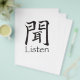 Den japanska Kanji-symbolen för "Lyssna" på ord visas i kalligrafipenseldrag och ser mycket coola ut på en skjorta, påse, hatt eller knapp. Vi har till och med lagt till den engelska översättningen nedan så att folk får meddelandet. Teckendesignen baseras på en gateway med ett öra inuti. Söt coola! Du kan ändra bakgrunden till färg och även lägga till text.