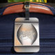 Denna vackra väskmärke är dekorerad med en mycket realistisk imitation av borstat stål med skuggor och höjdpunkter. I mitten, som ett hjärta som öppnas, öppnas metallen för att visa ditt monogram, skrivet med vackra bokstäver i script- och sans serif-teckensnitt, elegant sammanflätade och vars skuggor och ljus imiterar prägling och gravering.