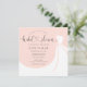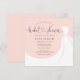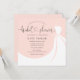 En chic bröllopsdusch-inbjudan med en elegant bröllopsklänning, vacker scripttext och alla dina speciella detaljer för bröllopsduschen, personliggjorda på en lysterös rosa bakgrund. Baksidan har en matchande bakgrund med ett prickmönster. Designad av Thisisnotme©