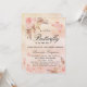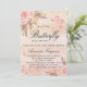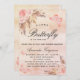 För en modern boho stil babydusch. A ro guld, rosa, skorstensbildning mot metallisk tittar bakgrund. Dekorerad med ro guld och rosa blommigt, rosor, pampasgräs och fjärilar. Anpassa och lägg till information om namn och party.