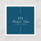 Kvadratblått och vitt affärskort med en professionell av ett lyxigt monogramskript för initialer namnteckning namn och karriär framför, namn, yrke och fullt bakifrån, perfekt för verkliga gods, verkstäder, bokföring, konsulttjänster och alla yrken.