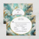 Färdigställ ditt bröllopspaket med detta exklusiva turkos-guldborststruken svarsbrevskort, designat för att spegla den moderna elegansen i din fest. Rika turkosa penseldrag sveper över bakgrunden, accentuerade med varma förgyllda detaljer för en sofistikerad, målerisk finish. Dina svarsdetaljer sitter inom en raffinerad oval banner, infattad av en förgylld ram, vilket skapar en sammanhängande och lyxig look som passar perfekt med den matchande inbjudan. Idealiskt för moderna, konstnärliga eller färgrika bröllop, tillför detta svarsbrevskort en touch av glamour samtidigt som det håller dina gästsvar vackert organiserade.