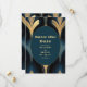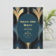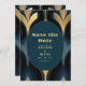 Lyxblått och Guld Art Deco Bröllop Spara Datumet