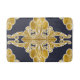 Lyxdesign, blommönster, marinblått, guld badrumsmatta