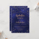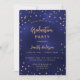 Ett glamoröst inbjudningskort för en studentfest för både honom och henne. En marin blå bakgrund med faux guld-stjärnor. Den blå färg är ojämn. Anpassa och lägg till information om namn och party. Texten Studenten och namn är skrivna med ett modernt handskript i stil. Golden färgad. Baksida: marin blå bakgrund och guldstjärnor.