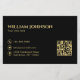 Denna eleganta visitkortsmall för fastighetsproffs utstrålar lyx och sofistikering. Med en rik svart bakgrund prydd med metalliskt guld utsänder den prestige och kvalitet direkt. Den slående gula husikonen och integrerade QR-koden gör den både minnesvärd och funktionell, vilket säkerställer att potentiella kunder enkelt kan nå din digitala närvaro. Perfekt för lyxiga fastighetsmäklare och företag som vill sticka ut på en konkurrensutsatt marknad. Lägg till dina viktiga kontaktuppgifter i denna snygga design och gör ett bestående intryck.