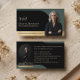 Gör ett varaktigt intryck med vår eleganta och moderna visitkortdesign, perfekt för fastighetsmäklare, advokatbyråer och yrkespersoner som söker en sofistikerad och polerad look. Designen har en raffinerad svart, grön och guld färgpalett för en lyxig och tidlös känsla, med en stilfull bågform som vackert inramar ditt foto. Du kan enkelt ta bort fotots bakgrund med hjälp av Zazzles funktion "Ta bort bakgrund" i designverktyget för en sömlös och professionell finish. Framsidan av kortet har plats för ditt namn, titel och valfri text som "Möte med [Ditt namn]," medan baksidan visar ett andra foto inramat i en båge tillsammans med dina kontaktuppgifter. Perfekt för dem som värdesätter förfinad varumärkesidentitet, denna mall kombinerar stil, sofistikation och funktional