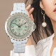 Lyxig akvarellmarmorerad stenbesatt klocka för kvinnor - Personlig bröllops- och årsdagspresent.