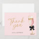 Skicka dina hjärtliga tack med detta tackkort för bröllopsfest med rosa champagne! Med en chic design med champagneglas och mjuka rosa toner är det det perfekta sättet att lägga till en touch av elegans till din tacksamhet för bröllopsfesten. Cava Party Design.