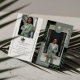 Skapa ett förfinat första intryck med vår Elegant Lyx Fastighets Affärs Kort Mall. Designad för den kräsna professionella, har denna anpassningsbara affärskort en fullständig fotolayout i mitten, perfekt för att visa din företagsporträtt eller varumärkesbild. Designen kombinerar modern elegans med tropisk sofistikation – med kunglig palmlövfotografering i det övre vänstra och nedre högra hörnet och solida sagegröna accenter i de motsatta hörnen för perfekt balans. En klassisk välvd vapensköld kröner layouten, prydd med vår handritade förgyllda palmtree-illustration och utrymme för dina två monograminitialer på vardera sida. Ditt namn löper vertikalt längs båda sidor av din porträtt, medan din professionella titel elegant visas under. Baksidan ger utrymme för ett andra foto eller varumärkesbild, din logotyp och all kontaktinformation i ett snyggt, minimalistiskt format – vilket skapar en sammanhängande, högklassig presentation. Perfekt för fastighetsmäklare, inredningsarkitekter, advokater, konsulter och lyxvarumärkesägare som sö