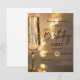 Gör din fest oförglömlig med denna lyxiga födelsedagsinbjudan med guldlyktor, med ett elegant champagneglas och mjuka gyllene bokeh-ljus för en modern, klassisk touch.