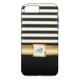 Det beställnings- monogramsmartphonefodral med lyxigt guld utformade designinslag som skrivs ut på täcka och, låter dig bära din celltelefon i stil som inkluderar ett vit- och guldrandmönster.