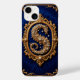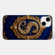 En invecklad gyllene dekorativ design prydd med pärlor och ädelstenar.