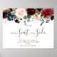 Komplettera din rustika bröllopshändelse med denna lyxiga klassiska välj en plats inte en sida-affisch. Designen har vackra handmålade rosa, blush, blå, marinblå och burgunderfärgade blommor med gröna blad, snyggt grupperade i eleganta buketter för att pryda dina bröllopskort.