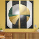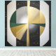 Förhöj ditt utrymme med denna höglyxiga abstrakta konst. Cirkulära former i borstat guld, djupgrönt och svart skapar en sofistikerad och himmelskt atmosfär. Guldpartiklar ger stjärnlik glans. Perfekt för modern inredning och premiumvarumärken.