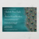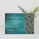 Bröllopsinbjudningar med påfågel. Visa upp din eleganta stil med denna eleganta tealblå påfågelbröllopsinbjudan. Varje platt inbjudan kommer med ett vitt kuvert. Välj anpassningsknappen för att ändra teckensnittsstil, färg och storlek.