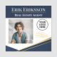Professionell namnbricka med en elegant marinblå och guldgeometrisk design, perfekt för fastighetsmäklare, mäklare och företagsproffs. Denna rena och moderna layout inkluderar utrymme för foto, logotyp och kontaktinformation, vilket skapar ett polerat och pålitligt utseende. Perfekt för nätverksevenemang, visningar av fastigheter och kundmöten.