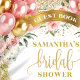 Fira kärlek med stil med vår Boho Blush Floral & Gold Glitter Bröllopsfest Gästbok. Med ömtåliga akvarell rosa blommor, chic rosa och guld ballonger och gnistrande glitteraccent är denna eleganta gästbok det perfekta sättet att fånga hjärtliga meddelanden, råd och lyckönskningar från familj och vänner.