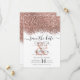 Den eleganta, glamourösa och moderna rädda-datum-kortet för bröllop är perfekt för det samtida och stiliga förlovade paret. Den har en falskt tryckt rose gold glitterkonfetti med prickig färgblock på en enkel vit bakgrund. Baksidan visar samma glitter men en tjockare panel. Denna chic, lyxiga och unika design kommer att bli en hit bland alla dina gäster!