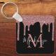 Elegant svart och blush rosa/roséguld falskt glitterdropp som gnistrar monogram fyrkantig nyckelring med flickig rosa falskt glitterdropp och ditt anpassade namn och initial. Perfekt för din glamourösa stil. Gör ett bra tillägg till födelsedagspresenter, svensexepartygift, brudtärnegåvor eller bara för att visa upp din glans! Du badar i lyx! Om du behöver hjälp eller matchande föremål, vänligen kontakta oss på cedarandstring@gmail.com