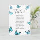 Blå akvarell fjärilar Bröllops bordplan. Elegant val för sommarbröllop. Del av en bröllopssamling. Kort med måltidsval.