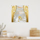 Vitt siden har en naturlig pärlvitt färg och ser svalt ut och, när det trycks på tyget, framstår det som en naturlig fiber. Denna tidlösa sofistikering, kännetecknad av en mjuk, lysande glans, skapar en drömlik, lysande atmosfär bakom guldbilder för alla firande produkter. Vita rosor är tidlösa för alla tillfällen.