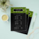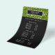 Lyxig och glamourös flyerdesign visar dina tjänster, prislista eller företagsinformation över en digital bild med ett chic grönt glittermönster. Svart rand överst.