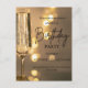 Gör din fest oförglömlig med denna lyxiga födelsedagsinbjudan med guldlyktor, med ett elegant champagneglas och mjuka gyllene bokeh-ljus för en modern, klassisk touch.