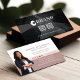 Fram sidan av visitkortet har en utskuren platshållare för foto för att visa ditt eget utskurna företagsfoto. En enkel och professionell layout visar snyggt namn, titel, adress, kontaktinformation och socialt media-handtag tillsammans med 6 sociala media-ikoner. Baksidan är utformad i en enkel layout med en platshållare för fotobakgrund för att visa din egen bakgrundsbild på baksidan av kortet med en djupgrå genomskinlig fotoöverlagring. Anpassa med två av dina egna QR-koder. Obs: för att designen ska se ut som vår mall, måste du ladda upp ditt personliga företagsfoto med en genomskinlig bakgrund i PNG-format. Du kan anpassa textstorlek, typsnitt, färger och bakgrundsfärg för att passa din egen personliga smak.