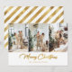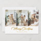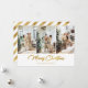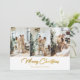 Lyxvit och guld folie God Jul fotokort med ett kalligrafisk julhälsning och fotokollage på framsidan och eleganta ränder och fallande snö på baksidan. Guld folieeffekten är endast simulerad i konstverket. Anpassa enkelt detta julkort med dina foton och text.
