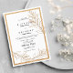 En modern lyxvit och guld glitter löv blommigt Bröllbjudan. Den här inbjudan till blommigten guld i elegant i glitter är perfekt för alla klassofistikerade och sofistikerade glam-flickor. Den här designen är perfekt för en trendig- och snyggt party-händelse. Anpassa den här designen med egen information om meddelande och personlig. Alla designer skrivs ut.