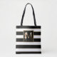 M Blommig monogram guld | Svarta vita guld ränder Tygkasse