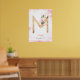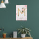 M Brev Monogram Guld Löv Rosa Magnolia Blommigt Poster