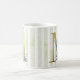 M, gyllene inledning på blå och vit rand kaffemugg