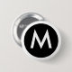 En badge-stil-knapp med ett monogram. Den vita skivan är designen inslag och den svarta texten och bakgrunden kan ändras om du "Anpassa den!" med systemet.