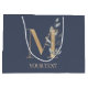 Brev M monogram blommigt. Brev M i guldbrun struktur accentuerad med vattenfärgade löv av grönt, blommar av blommor och smälta droppar av guld. Anpassa till namn i matchande teckensnitt.