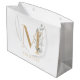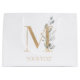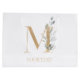 Brev M monogram blommigt. Brev M i guldbrun struktur accentuerad med grönt vattenfärgade löv, blommor och blommar från guld. Anpassa till namn i matchande teckensnitt.
