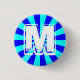 Vitt, grungigt monogram på funkyns akvarium och blå stjärnbrust mönster.