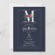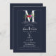 M Monogram senaste initiala, moderna, blå Blommigt Inbjudningar