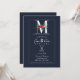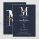 M Monogram Sista Initial Modern Blå Blommig Bröllo Inbjudningar