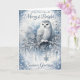 Denna eleganta julhälsningskort har en vacker illustration av en snöuggla som sitter på en isig vintergren, omgiven av ömtåliga snöflingor, frostiga ornament och skimrande vinterdetaljer. Ljus blå och silver toner skapar en lugn julstämning, perfekt kompletterad med det tidlösa budskapet ”May Your Days Be Merry & Bright” och ”Season's Greetings”. Perfekt för att skicka varma önskningar med en touch av vintermagi, detta kort är perfekt för naturälskare och de som uppskattar raffinerad julkonst.