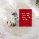 Skicka lite extra julglädje med detta julkort för katter med texten ”May Your Days Be Furry and Bright”! Detta söta och roliga kort med en djärvt röd bakgrund och en fantasifull julkattsdesign är det perfekta sättet att fira säsongen med humor och kärlek till husdjur. Du kan göra det ännu mer speciellt genom att anpassa det med ett foto av din egen lurviga vän och lägga till ett personligt julmeddelande. Perfekt för kattälskare och husdjursägare, detta moderna julkort sprider leenden och festlig glädje till alla på din lista. Dela glädjen och värmen under säsongen med ett kort som är lika sött och unikt som ditt husdjur!