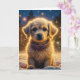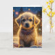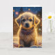 Cute-valpen-hund utanför på ett personlig julkort för snönatten.