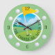 Missa aldrig en tee-tid med golf-temat väggur. Mitten av uret har en bild av en golfbana, med en flagga och golfboll. Tolv, tre, sex och nio är siffror medan de återstående siffrorna ersatts med golfbollar. Du kan behålla den befintliga texten eller anpassa den. Du kan också ändra bakgrundsfärgen.