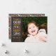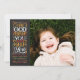 Handskrivet meddelande om religiösa till jul bredvid ditt favoritfoto. Ytterligare foton kan läggas till över bakgrunden mönster på baksidan av kortet.
