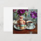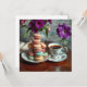 Macaron, Coffee and Vase of Purple Flowers Kort