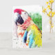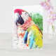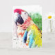 Ett tomt hälsningskort med en levande och färgstark digital vattenfärg av en Macaw.