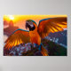 Snygg Macaw-cirkling över RIo De Janeiro vid en vacker solnedgång... Låt oss Färg din värld