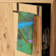 Den original- konstdesignen av den färgrika macawen mekaniskt säga efter i djungeln av konstnären Carolyn McFann av studion för två spinnakatter som skrivs ut på en kvalitets- maskin-washable amerikanMojo kökshandduk för papegojafläktar.